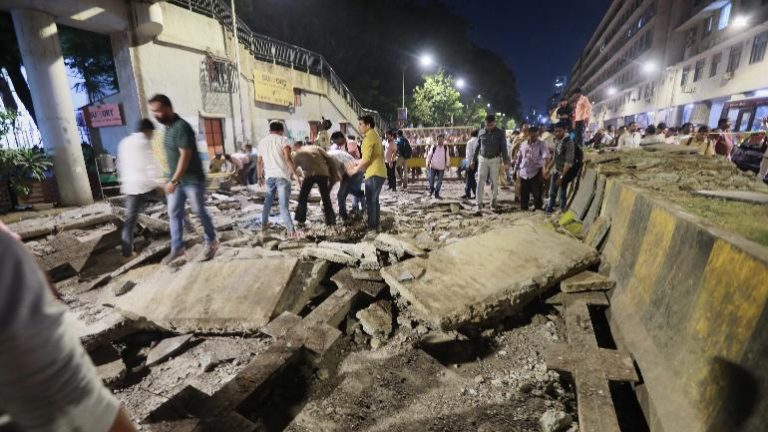 नयाँ दिल्ली, १ चैत । भारतको आर्थिक राजधानी मुम्बईमा पैदल यात्रु हिड्ने एक पुल भत्किदाँ ज्यान गुमाउने व्यक्तिको सङ्ख्या कम्तीमा ६ हुनुको साथै अन्य ३१ घाइते भएका प्रहरी स्रोतले शुक्रबार जानकारी दिएको छ ।
