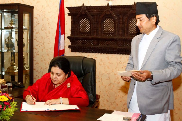 काठमाडौँ, ४ चैत । राष्ट्रपति विद्यादेवी भण्डारीले सङ्घीय संसद्का दुवै सदनको बैठकबाट पारित दुई वटा विधेयक प्रमाणीकरण गरेकी छिन् ।