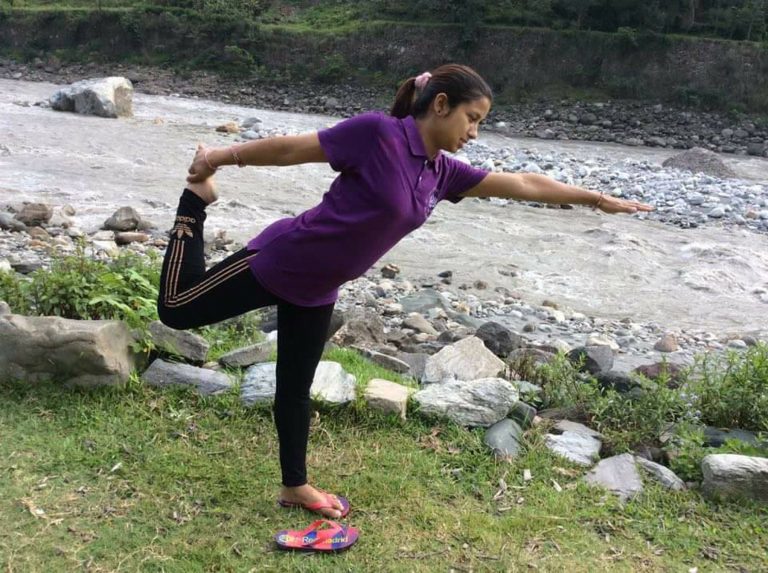 योगाको आकर्षण कालीगण्डकी नदी किनारामा योगा गर्दै एक युवती । नवीन आनन्द योग केन्द्रमा २०७० सालदेखि म्याग्दीमा योग केन्द्र सञ्चालन गरेपछि यहाँ योगा गर्ने युवायुवतीको आकर्षण बढेको हो । तस्वीर ः धु्रबसागर शर्मा, गलेश्वर (म्याग्दी)