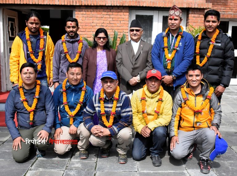 पथपदर्शक छिरिङजाङ्बु शेर्पा, पेमाङिमा शेर्पा, आङपासाङ शेर्पा, आङ्बु शेर्पा र केशव पौडेललाई पनि बिदाइ गरिएको छ । प्रधानमन्त्री ओलीले उक्त अवसरमा विश्वको सर्वोच्च शिखर सगरमाथाको मापन पहिलोपटक नेपालीले गर्न लागेको बताउँदै यस पटक परिणाम नै आधिकारिक हुने बताउनुभयो । प्रधानमन्त्री ओलीले आरोहीहरुलाई सम्पूर्ण नेपालीको तर्फबाट शुभकामना व्यक्त गर्नुहुँदै पथप्रर्दशकको निर्देशनअनुसार सगरमाथाको आरोहण गरी कीर्तिमान कायम गर्न आग्रह गर्नुभयो । प्रधानमन्त्रीले आरोहणकार्य चुनौतीपूर्ण रहेकाले मौसम र स्वास्थ्यको अनुकूलतामा सावधानी अपनाएर अगाडि बढ्न आरोहण टोलीलाई सुझाव दिनुभयो ।