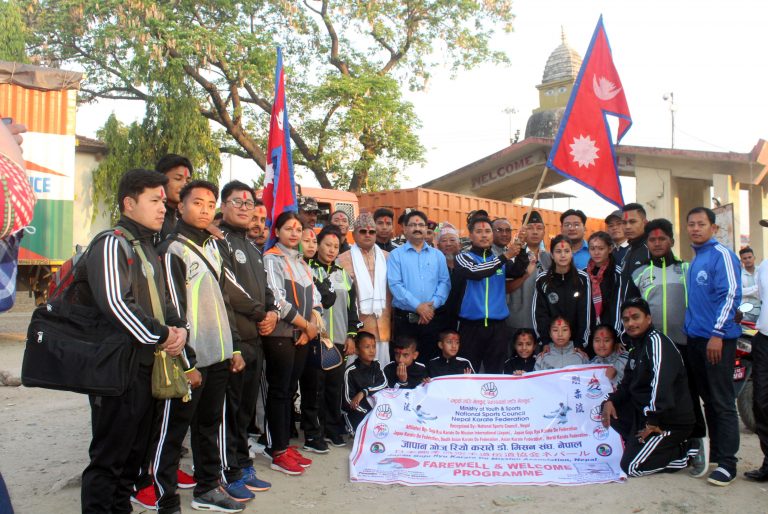 भारतमा हुने इन्टरनेशनल कराते एण्ड किक बक्सिङ च्याम्पियनसिपमा सहभागिता जनाउन नेपालको प्रतिनिधित्व गर्दै जापान गोजुरियो कराते डो मिसन सङ्घको राष्ट्रिय टोली आज त्यसतर्फ प्रस्थान गरेको छ ।पटनाको पाटलीपुत्र स्पोट्र्स कम्पेलेक्समा यही वैशाख ९ र १० गते हुने प्रतियोगितामा सहभागी हुन उक्त सङ्घका प्रमुख प्रशिक्षक केबि राना ९काजी० को नेतृत्वमा ३५ सदस्यीय टोली त्यसतर्फ प्रस्थान गरेको हो । टोलीलाई बेलहियामा नेपाल भारतमैत्री समाजका अध्यक्ष शान्तकुमार शर्माले राष्ट्रिय झण्डा हस्तान्तरण गरी बिदाइ गर्नुभएको थियो । उक्त प्रतियोगितामा नेपालसहित आठ देशले सहभागिता जनाउने छन् ।