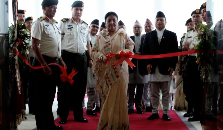 काठमाडौँ, १० वैशाख । राष्ट्रपति विद्यादेवी भण्डारीले नवनिर्मित जङ्गी अड्डा भवनको आज उद्घाटन गर्नुभएको छ । सैनिक मुख्यालयमा जङ्गी अड्डामा आज आयोजित विशेष समारोहमा राष्ट्रपति भण्डारीले अत्याधुनिक प्रविधियुक्त उक्त नयाँ भवनको उद्घाटन गर्नुभएको हो । उहाँ नेपाली सेनाका परमाधिपति हुनुहुन्छ ।