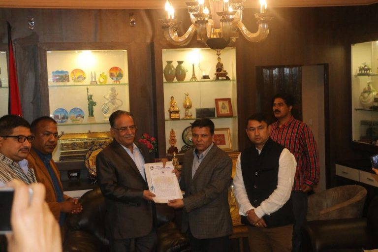 ‘पत्रकार महासंघको तर्फवाट तपाईहरुले उठाउनु भएको कुरा जायज छ ।’ अध्यक्ष प्रचण्डले भन्नभयो, ‘यो विषयमा पार्टी र सरकारमा छलफल हुन्छ । म पनि प्रधानमन्त्रीलाई यसबारे ध्यानाकर्षण गराउँछु । तपाईहरुका कुरा सरकारसमक्ष पु¥याउने र सम्भव हुने जति काम गर्न म पनि पहलकदमी लिन्छु ।’