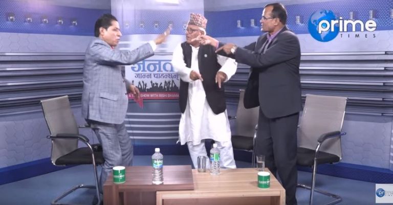 नेकपा र कांग्रेस नेताबीच टिभीको स्टुडियोमै कुटाकुट, डाँका भनेपछि मुख छोडाछोड (भिडियोसहित)