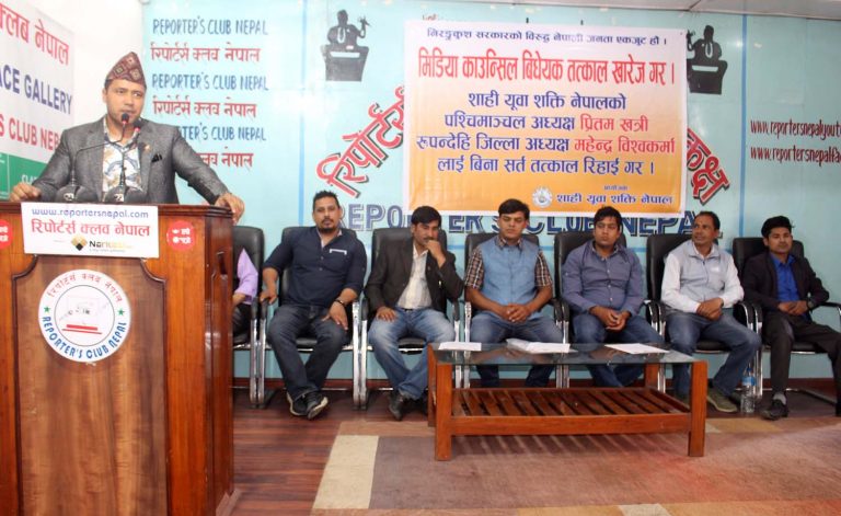 मिडिया काउन्सिलसम्बन्धी विद्येयक खारेज गर्नुपर्छ : शाही युवा शक्ति नेपाल