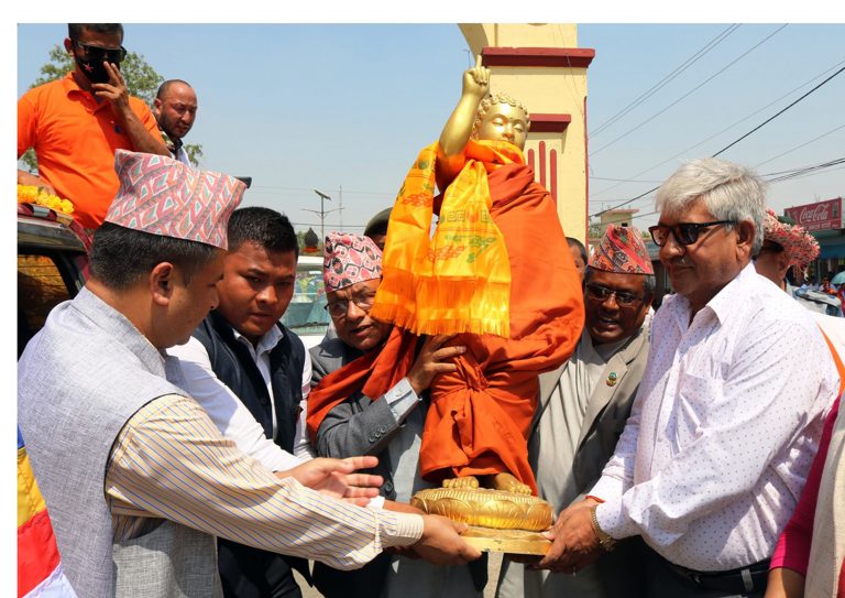 बुद्ध जयन्तीको दोस्रो दिन आज लुम्बिनीमा जन्मिनुभएका शाक्यमुनि बुद्धलाई शिशु बुद्धका रुपमा बाजागाजाका साथ रथयात्रासहित उहाँको गृहनगर कपिलवस्तु भित्र्याइएको छ ।