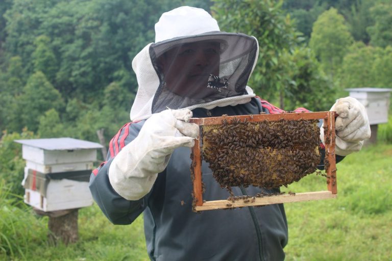 बागलुङ, जैमिनी नगरपालिका १० स्थित किसान यामबहादुर थापा माहुरीको मह निकाल्ने तयारी गर्दै । लामो समयदेखि मौरी पालन व्यवसाय गरेर मनग्ये आम्दानी गरेका छन । तस्वीरः तारानाथ आचार्य