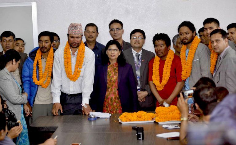 सगरमाथाको उचाई मापन गर्न गएका टोलीलाई स्वागत