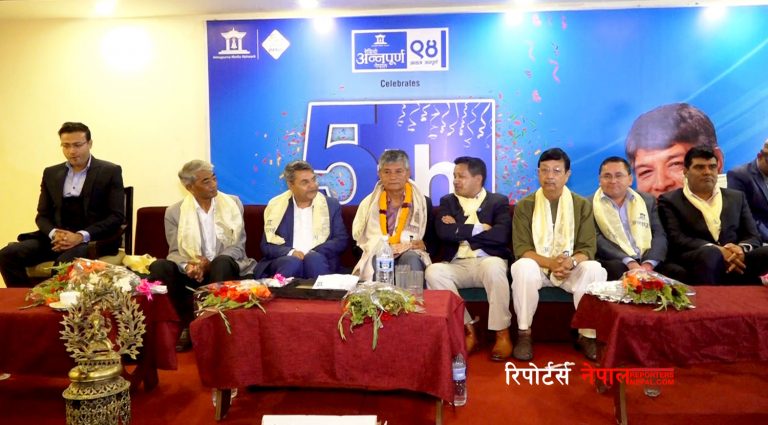 त्यस्तै, अन्नपूर्ण मिडिया नेटवर्क अध्यक्ष रामेश्वर थापाले ५ औं वर्षमा प्रवेश गरेको अन्नपूर्ण रेडियो राष्ट्रिय प्रसारणमा जाने तयारीमा रहेको बताए। ‘हामी छिट्टै राष्ट्रिय प्रसारणमा जाँदैछौँ’, अध्यक्ष थापाले भने। तस्विर : मुकुन्द कालिकोटे/रिपोर्टर्स नेपाल डटकम