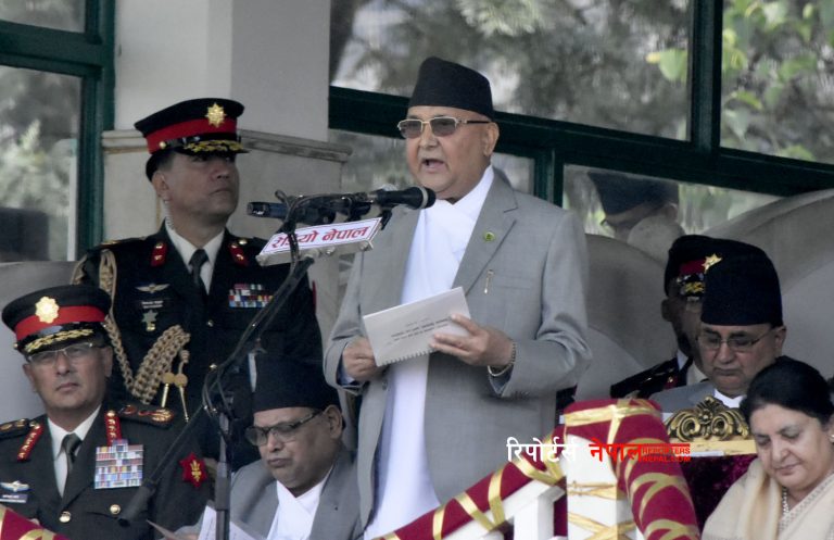 काठमाडौं, १५ जेठ । प्रधानमन्त्री केपी शर्मा ओलीले गणतन्त्र दिवस जनताको विजय र कुलीनतन्त्रको पराजयको दिन भएको बताएका छन्। गणतन्त्र दिवसको अवसरमा आज आयोजित कार्यक्रममलाई सम्बोधन गर्दै प्रधानमन्त्री ओलीले सो कुरा बताएका हुन्।