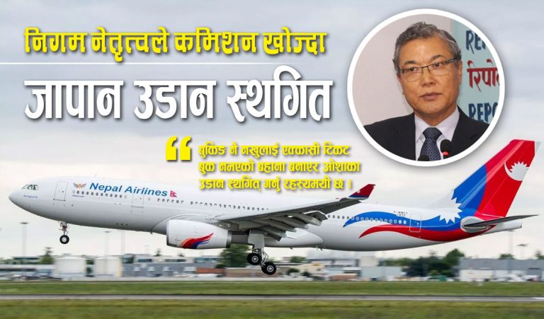 जेठ २५, काठमाण्डौ । नेपाल वायुसेवा निगमका जापानका एकमात्र प्रतिनिधि देवमान हिराचनले निगमले जापानको ओशाकामा आगामी जुलाई ४ तारिखबाट गर्ने भनिएको वाईडबडीको उडान स्थगित गरेकोमा कडा आपत्ति जनाएका छन् ।