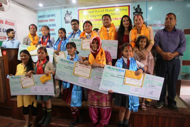 कार्यक्रममा राष्ट्रियस्तरको हस्तलेखन प्रतियोगिता–२०७६ का विजेताहरुलाई विजेता बनेका विद्यार्थीहरु अध्ययनरत विद्यालयका प्रधानाध्यापकले नै पुरस्कार वितरण गरेका थिए । उक्त प्रतियोगितामा सिनियरतर्फ प्रथम आरोनी स्कुलकी छात्रा नाजमिन खातुनले जितेकी हुन् । उनलाई ८ हजार राशिसहित आज पुरस्कृत गरिएको हो ।