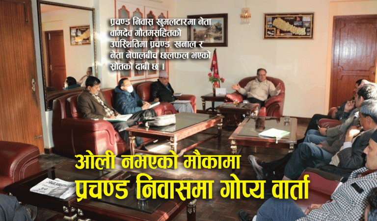 प्रचण्ड निवास खुमलटारमा नेता वामदेव गौतमसहितको उपस्थितिमा प्रचण्ड, खनाल र नेता नेपालबीच छलफल भएको स्रोतको दाबी छ ।
