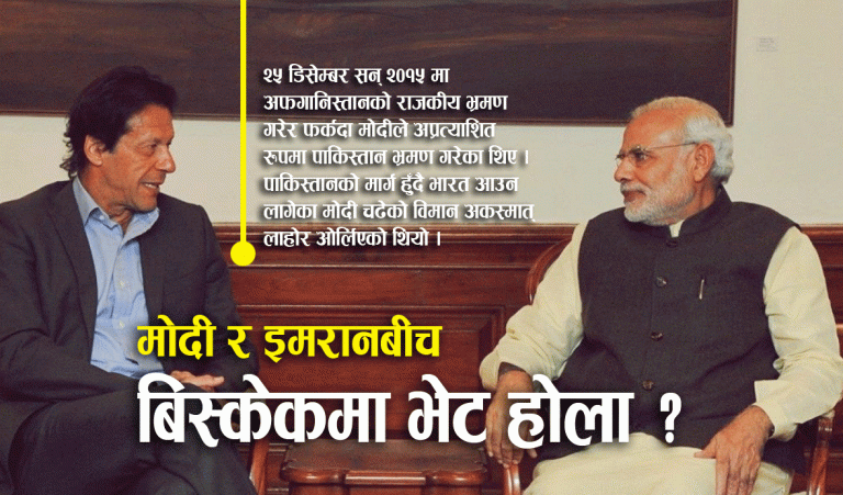 यो हप्ता भारतीय प्रधानमन्त्री नरेन्द्र मोदी र पाकिस्तानी प्रधानमन्त्री इमरान खान एउटै कार्यक्रममा सहभागी हुँदैछन् । ३० र ३१ जेष्ठमा किर्गिस्तानको बिस्केकमा आयोजना हुन गइरहेको सांघाई सहयोग संघको शिखर सम्मेलनमा सहभागी दुई नेताबीच द्विपक्षीय भेट होला नहोला ? चासोको विषय बनेको छ ।
