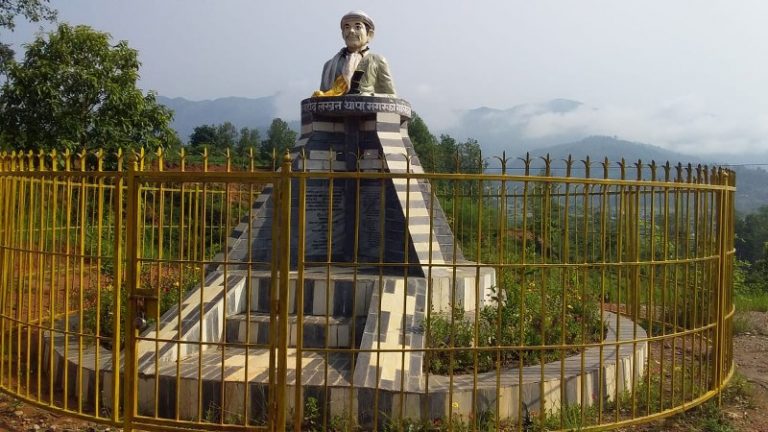 पाल्पा रामपुर नगरपालिका–४ स्थित शान्तिदिप पार्कमा स्थानीय मगर समुदायद्वारा निर्माण गरिएको सहीद लखन थापाको सालिक । तस्वीर: सुशीला रेग्मी