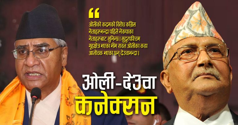 ओली र देउवाबीचको कनेक्शनका कारण प्रमुख प्रतिपक्षी दल नेपाली काँग्रेसको भूमिका सत्तापक्षकै जस्तो छ । ओलीको कदमको विरोध काँग्रेस नेताहरुभन्दा पहिले नेकपाका नेताहरुबाट सुनिन्छ । सुदुरपश्चिम गृहक्षेत्र भएका भीम रावल ओलीका कडा आलोचक भएका छन् देउवाभन्दा । अहिले ओलीको कडा विरोध गर्ने उनै रावल छन् ।
