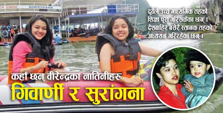 काठमाडौं, ७ असार । दरबार हत्याकाण्डमा राजा वीरेन्द्र शाहको वंश नाश गरिएको भनिएपनि उनकी छोरीतर्फकी दुई नातिनीहरु मध्ये जेठी गिर्वाणी राणाले किशोरावस्था पार गरिसकेकी छिन् । कान्छी सुरांगना किशोरावस्था पार गर्दैछिन् ।