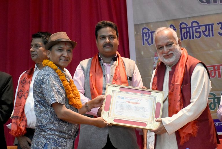 काठमाडौं । रिपोर्टर्स नेपाल डटकमका फोटो पत्रकार मुकुन्द बहादुर कालिकोटे सम्मानित भएका छन् । शनिबार काठमाडौंको नेपाल पुलिस क्लबमा आयोजित विशेष समारोहकाबीच पत्रकार कालिकोटेलाई शिवपुरी मिडिया नेटर्वक प्रा.लिले सम्मान गरेको हो ।