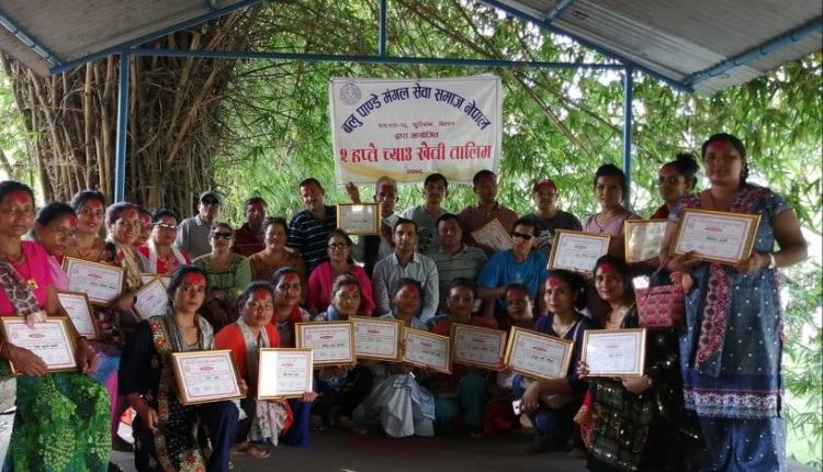 यहि असर ९ गते समापन भएको तालिममा तालिम प्राप्त गरेकालाई नगद तथा प्रमाणपत्रले सम्मान गरिएको थियो। उक्त समापन कार्यक्रमका प्रमुख अतिथि वडाका पर्तिनिधी वडा सदस्य साबित्री देबकोटाले सम्पूर्ण सहभागीहरुलाई आफुले सिकेको सिपलाई सहि सदुपयोग गरेर आत्मनिर्भर बन्न सुझाब दिनु भयो। उहाँले समुहमा मिलेर काम गर्दा भोलि वडाबाट पनि सहयोगको लागि आफूले पनि पहल गर्ने कुराको जानकारी दिनु भयो। संस्थाका सस्थापक अध्यक्ष तथा संरक्षक बलराम बलु पाण्डेले तालिममा सहभागी सम्पूर्णलाई ब्यबसाहिकरुपमा च्याउ खेति गर्न संस्थाको तर्फबाट आवश्यक सहयोग गर्ने कुरालाई जोड दिदै भबिस्यमा फेरी पनि आय आर्जन बढाउने अन्य तालिमहरुको पनि व्यवस्था गर्ने जानकारी दिनु भयो। समापन कार्यक्रमको सभापति संस्थाका कोषाध्यक्ष तथा तालिम संयोजक तोरण दत्त सुबेदीले तालिममा सहभागी सम्पूर्णलाई तालिम अबधि भरि नियमितरुपमा आएर तालिम लिनु भएकोमा धन्यबाद दिदै भोलि ब्यबसाहिकरुपमा काम गर्दा आर्थिक समस्या परेमा संस्था मार्फत केहि सहयोग गर्न सकिने र तालिममा आफु अझै पोख्त भए जस्तो लाग्दैन भने फेरी पनि तालिमको लागि तालिम स्थल प्रशिक्षकको फाममा जानसकीने र केहि समस्या भएमा प्रशिक्षकलाई कुनै पनि समयमा भेट्न तथा सुझाब सल्लाह लिन सकिने कुरा गर्दै कार्यक्रम समापन गर्नु भएको थियो ।