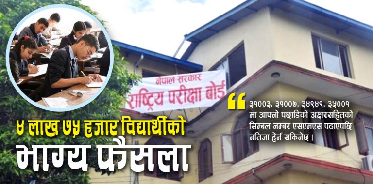 उल्लेखित वेवसाइटहरु बाट पनि परीक्षा नतिजा हेर्न सकिने बोर्डले जनाएको छ । वेवसाइटहरुमा http://www.doe.gov.np/ http://moe.gov.np/ हेर्न सकिनेछ । २०७५ चैत्रमा लिइएको एसईईमा चार लाख ७५ हजार परीक्षार्थी सहभागी थिए ।