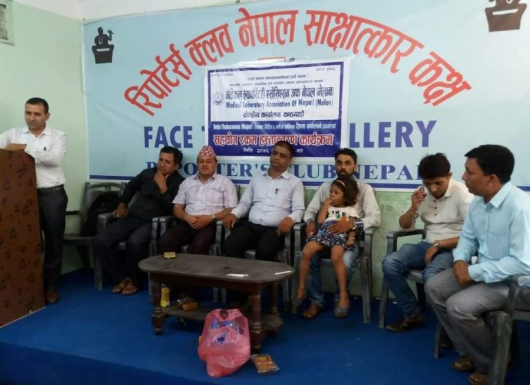 बुटवल, १६ असार। मेडिकल ल्याब्रेटोरी एसोसिएसन आफ नेपाल (मेलान) केन्द्रिय समितिले ‘थालासेमा मेजर’ रोगबाट पडित ६ बर्षीय बालिकाका लागि सहयोग हस्तान्तरण गरेको छ । कपिलवस्तु बुद्धभूमि ३ का श्रीधर खनालका ६ बर्षीय छोरी गृष्मा खनाललाई उपचारका लागि भन्दै मेलानले ५ लाख १ सय ९८ रुपौया सहयोग गरेको हो ।