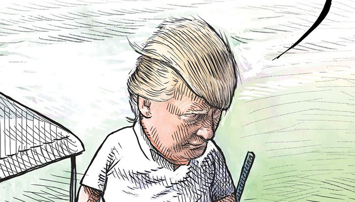 उनले कार्टुनमा ट्रम्पले दुई आप्रवासी डुबेको तस्बिरमाथि गल्फ गर्दै गरेको देखाउन खोजेका थिए । कार्टुनमा ट्रम्पलाई गल्फ कोर्टमा देखाइएको छ ।