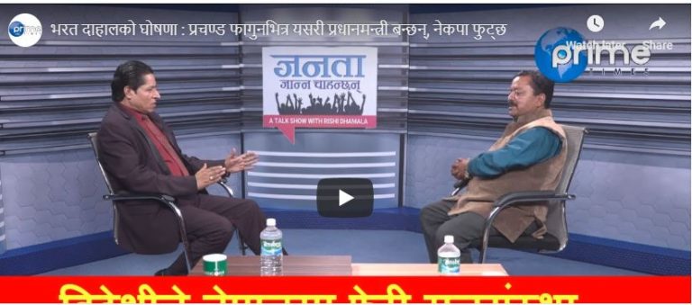 काठमाडौं । राजनीतिक विश्लेषक भरत दाहालले आगामी फागुनभित्र नेकपाका अध्यक्ष पुष्पकमल दाहाल प्रचण्ड प्रधानमन्त्री बन्ने दाबी गरेका छन् । मंगलबार राति प्राईम टाईम्स टेलिभिजनबाट प्रशारण भएको कार्यक्रम ‘जनता जान्न चाहन्छन्’ मा पत्रकार ऋषि धमलासँग कुरा गर्दै उनले यस्तो बताएका हुन् ।