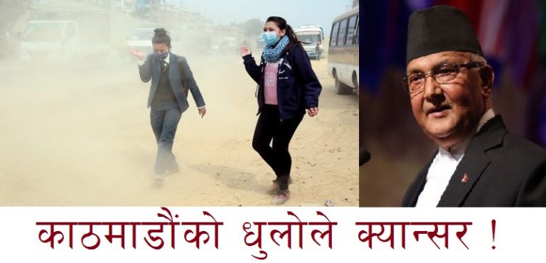 असार २०, काठमाण्डौ । काठमाण्डौ उपत्यकाको धेरै समस्याहरुमध्येको एक हो धुलो धुँवा । खुला ठाउँमा हिँड्दा धुलो धुँवाबाट जोगिनै मुस्किल छ । तर प्रधानमन्त्री केपी ओलीले आफू प्रधानमन्त्री भएपछि काठमाण्डौको आधा कम भएको दावी गर्नुभयो । सर्वसाधारण भने ओलीको दावीअनुसार धुवाँ धुलो कम भएको मान्न तयार छैनन् ।