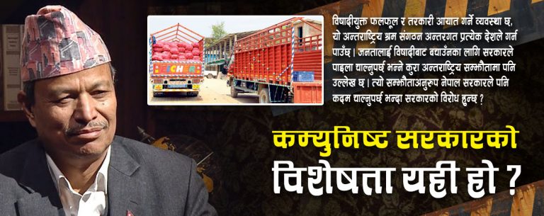 असार २३, काठमाण्डौ । नेपाल कम्युनिष्ट पार्टीका नेता भिम रावलले तेस्रो मुलुकबाट आयात हुने तरकारी तथा फलफूलको विषादी परीक्षणको सुरुवात तत्काल गर्न सरकारसँग माग गरेका छन् ।