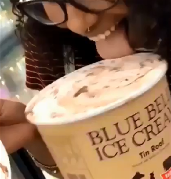 टेक्सासको लफकिनमा रहेको स्टोरमा पुगेर उनले आइसक्रिम निकालेकी थिइन् र चाटेपछि पुन जस्ताको तस्तै लगेर राखिदिएकी थिइन् । यो भिडियो एक करोड भन्दा धेरैले हेरेका थिए ।