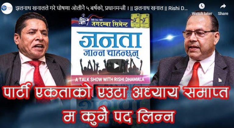 काठमाडौं । सत्तारुढ दल नेपाल कम्युनिष्ट पार्टी (नेकपा) का बरिष्ठ नेता झलनाथ खनालले वर्तमान प्रधानमन्त्री केपी शर्मा ओलीले नै पाँच वर्षसम्म सरकारको नेतृत्व गर्ने दाबी गरेका छन् । केही समय अघिसम्म नेता खनालले पार्टीभित्र सरकारको नेतृत्व अध्यक्षद्धय ओली र पुष्पकमल दाहाल प्रचण्डले आलोपालो गर्ने सहमति भएकोले सो सहमति कार्यान्वयन हुनुपर्ने माग गर्दै आएका थिए । तर, आज राति प्राईम टाईम्स टेलिभिजनबाट प्रशारण भएको “जनता जान्न चाहन्छन्” कार्यक्रममा पत्रकार ऋषि धमलासँग कुरा गर्दै नेता खनालले ओलीले नै पूरा कार्यकाल सरकारको नेतृत्व गर्ने घोषणा गरेका हुन् ।