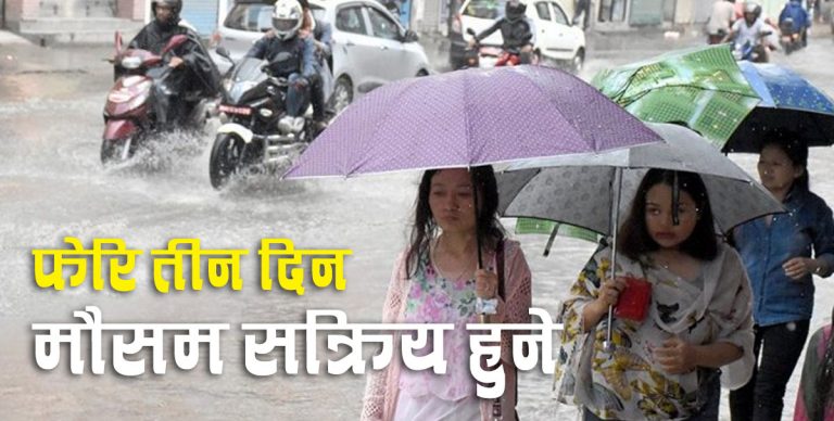 त्यसपछि मत्थर हुँदै गएको वर्षा अबको तिन दिन फेरि सक्रिय हुने बाटोमा अग्रसर भएको छ । मौसम सक्रिय भएसँगै पुनः बाढी पहिरोको खतरा रहेको भन्दै मौसमविदहरुले सतर्क हुन सल्लाह दिएका छन् ।