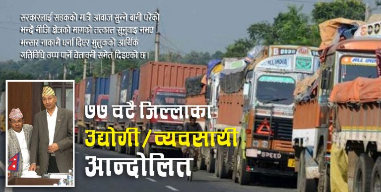 सरकारलाई सडकको मात्रै आवाज सुन्ने बानी परेको भन्दै नीजि क्षेत्रको मागको तत्काल सुनुवाइ नभए भन्सार नाकामै धर्ना दिएर मुलुकको आर्थिक गतिविधि ठप्प पार्ने चेतावनी समेत दिइएको छ ।