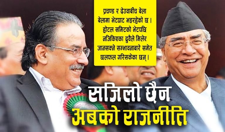 प्रचण्ड र देउवाबीच बेला बेलामा भेटघाट भइरहेको छ । होटल समिटको भेटपछि नजिकिएका दुवैले मिलेर जानसक्ने सम्भावनाबारे समेत छलफल गरिसकेका छन् ।