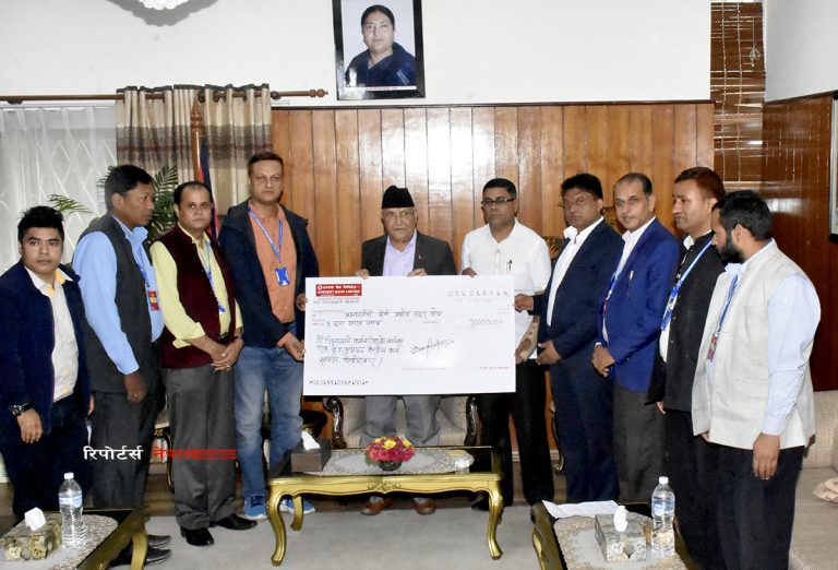 काठमाडौं । प्रधानमन्त्री केपी शर्मा ओलीलाई प्रधानमन्त्री दैवीप्रकोप उद्धार कोषमा जम्मा गर्न निजामती कर्मचारीको आधिकारिक ट्रेड युनियनले रु १० लाखको चेक हस्तान्तरण गरेको छ । युनियनका अध्यक्ष पुण्यप्रसाद ढकालले प्रधानमन्त्री ओलीलाई प्रधानमन्त्री निवास बालुवाटारमा उक्त चेक हस्तान्तरण गरेका हुन् ।