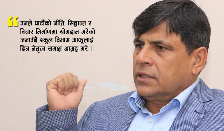 बिहीबार लुम्बिनी प्रेस क्लब, सिद्धार्थनगरले भैरहवामा आयोजना गरेको पत्रकार सम्मेलनमा नेता भुसालले यस्तो बताएका हुन । पार्टी सामूहिक निर्णयबाट चल्ने, आफूले गरेको योगदानको मूल्यांकन गर्ने र गुटगत स्वार्थभन्दा माथि उठ्ने हो भने स्कूल विभाग दिँदा न्यायोचित हुने उनको भनाई छ ।