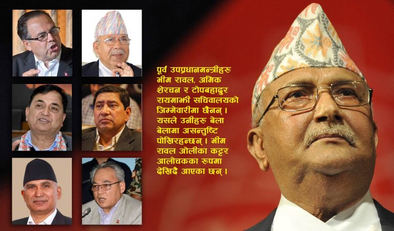 पूर्व उपप्रधानमन्त्रीहरु भीम रावल, अमिक शेरचन र टोपबहादुर रायमाझी सचिवालयको जिम्मेवारीमा छैनन् । यसले उनीहरु बेला बेलामा असन्तुष्टि पोखिरहन्छन् । भीम रावल ओलीका कट्टर आलोचकका रुपमा देखिदै आएका छन् ।