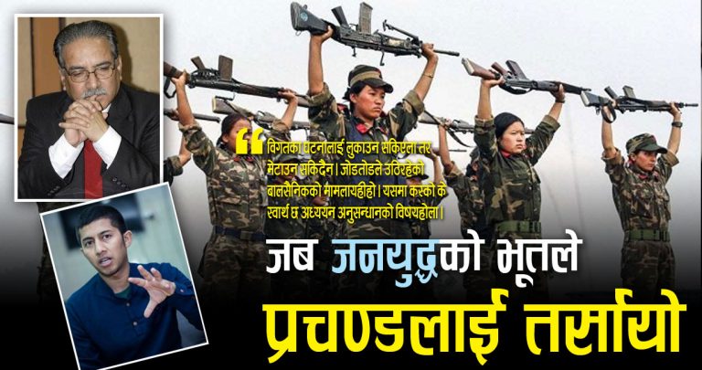 विगतका घटनालाई लुकाउन सकिएला तर मेटाउन सकिदैन । जोडतोडले उठिरहेको बालसैनिकको मामला यही हो । यसमा कस्को के स्वार्थ छ अध्ययन अनुसन्धानको विषय होला । तर, बालक अवस्थामा लेनिन बिष्टको काँधमा बन्दुक बोकाइएको होइन भनेर न त प्रचण्डले दाबी गर्न सक्छन् न त डा.बाबुराम भट्टराईले दाबी गर्न सक्छन् ।