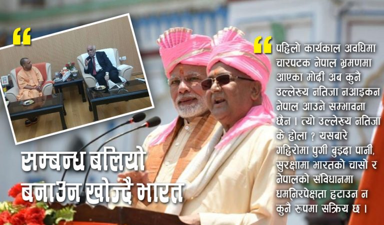 अब उनले अगष्टमा भुटान भ्रमण गर्नेछन् । त्यसपछि नेपाल भ्रमण गर्ने सम्भावना औल्याइएपनि टुंगो लागेको छैन । दिल्लीस्थित विश्वस्त स्रातले रिपोर्टर्स नेपाललाई दिएको जानकारी अनुसार मोदीले यस वर्षभित्र नेपाल भ्रमण गर्ने सम्भावना छैन । पहिलो कार्यकाल अवधिमा चारपटक नेपाल भ्रमणमा आएका मोदी अब कुनै उल्लेख्य नतिजा नआइकन नेपाल आउने सम्भावना छैन । त्यो उल्लेख्य नतिजा के होला ? यसबारे गहिरोमा पुगी बुझ्दा पानी, सुरक्षामा भारतको चासो र नेपालको संविधानमा धर्मनिरपेक्षता हटाउन न कुनै रुपमा सक्रिय छ । भारतको अबको सक्रियता यीनै विषयमा केन्द्रित हुनसक्छ ।