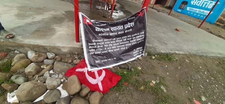 कैलालीः नेत्रविक्रम चन्द ‘विप्लव’ नेतृत्वको प्रतिबन्धित नेपाल कम्युनिस्ट पार्टीले कैलालीको बौनियामा चार जनाको घरजग्गा कब्जा गरेको छ ।