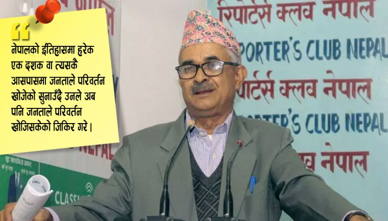 उनले भने,‘नेताहरुले भनेबमोजिम यो देश सिंगापुर बनेको भए र जम्मै नेपालीहरुले रोजगारी पाएको भए अहिलेको व्यवस्थाप्रति र नेताहरुप्रति जनताको धारणा नेगेटिभ हुँदैनथियो । तर, यो बीचमा केही पनि राम्रो काम भएका छैनन् ।’ नेपाली जनताले अहिलेको गणतान्त्रिक व्यवस्थाको विकल्प खोजिसकेको पनि उनको दाबी छ । नेपालको ईतिहासमा हरेक एक दशक वा त्यसकै आसपासमा जनताले परिवर्तन खोजेको सुनाउँदै उनले अब पनि जनताले परिवर्तन खोजिसकेको जिकिर गरे ।