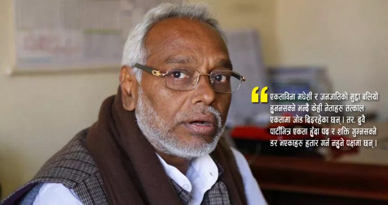 पार्टी एक बनाउनुअघि यादव सरकारबाट फिर्ता हुने र एकतालाई अन्तिम रुप दिने अभ्यास भइरहेको छ । एकताविना मधेशी र जनजातिको मुद्दा बलियो हुननसक्ने भन्दै केही नेताहरु तत्काल एकतामा जोड दिइरहेका छन् । तर, दुवै पार्टीभित्र एकता हुँदा पद र शक्ति गुम्नसक्ने डर भएकाहरु हतार गर्न नहुने पक्षमा छन् ।