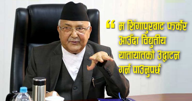 ओलीले बालुवाटारबाट सरकारका जिम्मेवार कर्मचारीहरुलाई चेतावनीको शैलीमा भने, “म सिंगापुरबाट फर्केर आउँदा विद्युतीय यातायातको उद्घाटन गर्न पाउनुपर्छ ।” ओलीले कुनै बहाना सुन्न नचाहेको स्पष्ट पार्दै उदघाटन गर्न नपाए कडा कदम चाल्ने चेतावनी दिए ।