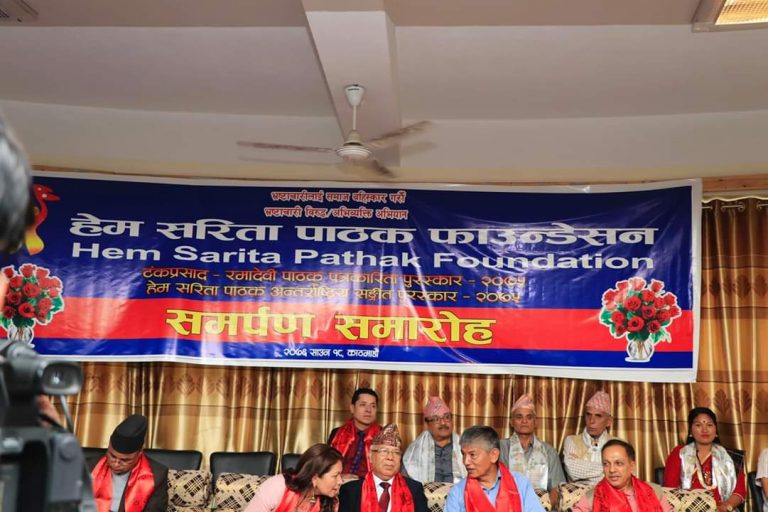 कार्यक्रममा फाउण्डेशनको टंकप्रसाद रमादेवी पाठक पत्रकारिता पुरस्कारबाट नेपाल पत्रकार महासंघका पूर्वअध्यक्ष शिव गाउँलेलाई पुरस्कृत गरिएको छ । उक्त पुरस्कारको राशि दुई हजार अमेरिकी डलर छ । त्यस्तै यसैगरी, पाँचसय अमेरिकी डलर बराबरको टंकप्रसाद रमादेवी साधना पुरस्कारबाट झापाका चन्द्र भण्डारीलाई पुरस्कृत गरिएको छ । यस वर्षको हेम सरिता संगीत पुरस्कार वरिष्ठ कलाकार जेबी टुहुरेलाई प्रदान गरिने गरिएको छ । पुरस्कारको राशि एक हजार अमेरिकी डलर छ ।