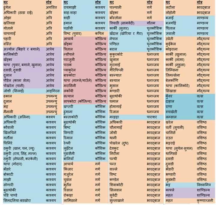 कुन थरको के गोत्र हुन्छ ? आफ्नो थर अनुसार आफैले थाहाँ पाउनुहोस
