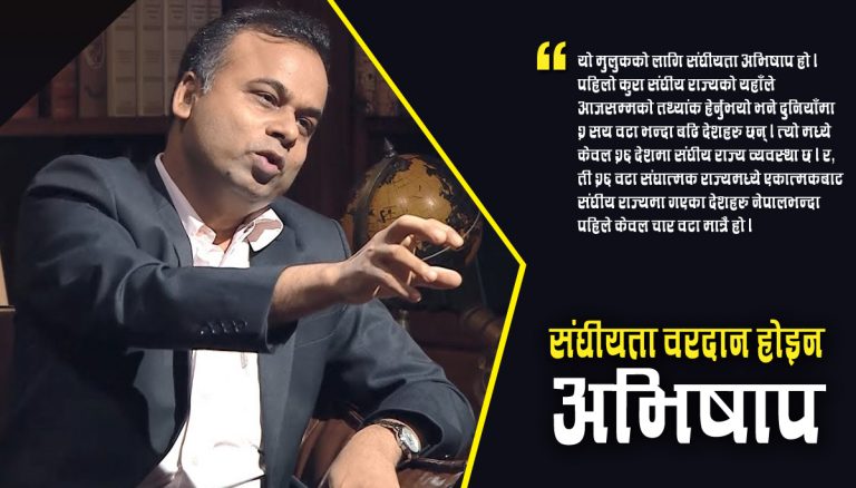 आचार्यले आफूले मुलुकको लागि संघीयता वरदान नभएर अभिषाप भएको पनि टिप्पणी गरेका छन् । कतिसम्म भने आचार्यले संघीय व्यवस्थालाई नेपालबाट जतिसक्दो चाँडो विदा गर्नुपर्नेपनि बताएका छन् । उनले भनेका छन्,‘यो मुलुकको लागि संघीयता अभिषाप हो । पहिलो कुरा संघीय राज्यको यहाँले आजसम्मको तथ्यांक हेर्नुभयो भने दुनियाँमा २ सय वटा भन्दा बढि देशहरु छन् । त्यो मध्ये केवल २६ देशमा संघीय राज्य व्यवस्था छ । र, ती २६ वटा संघात्मक राज्यमध्ये एकात्मकबाट संघीय राज्यमा गएका देशहरु नेपालभन्दा पहिले केवल चार वटा मात्रै हो । सुडान, नाईजेरिया, ईथोपिया, बेल्जियम हुन । र, नेपालसहित पाँच वटा देश हुन् । जुन -न देश एकात्मकबाट संघात्मकमा गए यो यति अप्राकृतिक भयो पनि यो भन्दा अर्को अप्राकृतिक दुनियाँमा केही पनि छैन् ।’