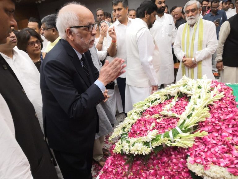 काठमाडौं । भारतकी पूर्व विदेशमन्त्री सुष्मा स्वराजलाई भारतका लागि नेपालका राजदूत निलाम्बर आचार्यले श्रद्धाञ्जली दिएका छन् । २२ साउनमा उनको पार्थिव शरीरलाई आचार्यले अन्तिम श्रद्धाञ्जली अर्पण गरेका हुन् ।