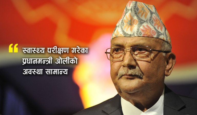 काठमाडौं, २३ साउन । प्रधानमन्त्री केपी शर्मा ओलीको स्वास्थ्य अवस्था सामान्य रहेको छ । सिंगापुरमा उनको स्वास्थ्य परीक्षणको काम सम्पन्न भएको छ । सिंगापुरस्थित नेशनल युनिर्सिटी हस्पिटलमा स्वास्थ्य परीक्षण गरेका प्रधानमन्त्री ओलीको चेकजाँचपछि उनको स्वास्थ्य अवस्था सामान्य रहेको रिपोर्ट आएको प्रधानमन्त्री ओलीको सचिवालयले जनाएको छ ।