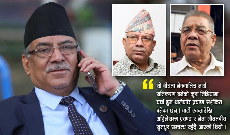 पार्टीभित्र अध्यक्ष ओली र प्रभावशाली नेता वामदेव गौतमबीच नयाँ गठबन्धन बन्ने हल्ला चलेपछि प्रचण्डले आफ्नो भेटवार्तालाई तिव्रता दिएका हुन् । उनीपनि दुवईमा आराम गरेर स्वदेश फर्किएका हुन् । यो बीचमा नेकपाभित्र नयाँ समिकरण बनेको कुरा मिडियामा चर्चा हुन थालेपछि प्रचण्ड सशंकित बनेका छन् । पार्टी एकतादेखि अहिलेसम्म प्रचण्ड र नेता गौतमबीच सुमधुर सम्बन्ध रहँदै आएको थियो ।
