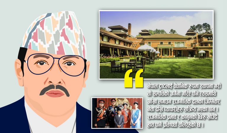 नेपाल ट्रष्टलाई वैधानिक रुपमा स्थापना गरी ती सम्पत्तिको जर्गेना गरिएपनि त्यसमाथि आँखा लगाउन राजनीतिक दलका जिम्मेवार नेता देखि व्यापारीहरु सक्रिय भएका छन् । राजनीतिक प्रभाव र कानुनको छिद्र खोज्दै हात पार्ने प्रतिष्पर्धा चलिरहेको छ ।